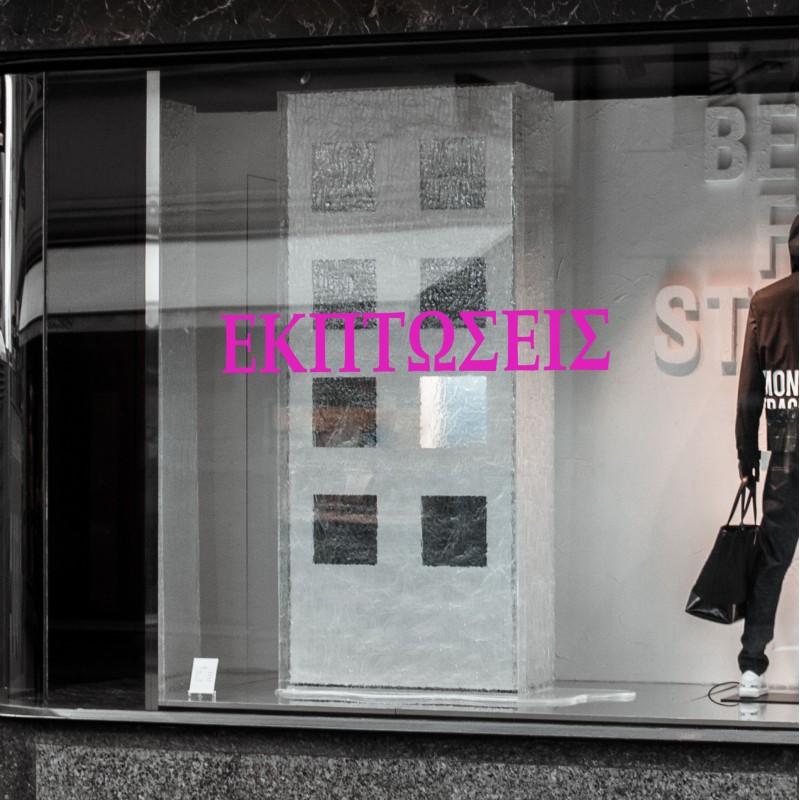 Cut decals for Shop window and "Εκπτώσεις" Greek word for sales.